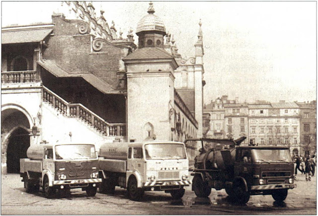 | Specjalistyczne samochody do czyszczenia kanałów typu SW-21 oraz SC produkcji "WUKO". Ilustracja z książki "Wodociągi Krakowa" |